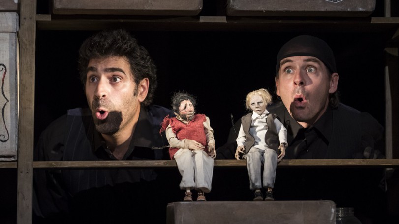 La mémoire de la barbarie, tout comme celle de la lutte de ceux qui s’y opposèrent, est réactivée par l’exploration des vestiges matériels et immatériels de l’Histoire. Le premier acte de la pièce pour adultes et adolescents visible en ce moment à Genève met intelligemment en scène des «archivistes-marionnettistes». Ces derniers déballent des cartons poussiéreux de petites marionnettes qui semblent émerger d’un long sommeil. Parce qu’elles évoquent l’essence des choses autant que leur fabrication et qu’elles sont fortement associées à l’univers de l’enfance, les marionnettes ont un formidable pouvoir d’évocation. A l’exception de Béranger, tous les personnages qui dialoguent dans la pièce se laissent impressionner par la présence des rhinocéros dans la ville. Celle-ci se fait de plus en menaçante. Ils voient dès lors leur horizon de pensée se rétrécir irrémédiablement.